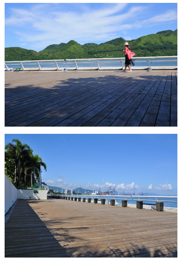盐田海滨栈道沙头角段(即原明思克航母段)西起中英街古塔公园,东起盐田港西港区码头,是市民和游客休闲观光的好去处。木栈道是采用森源进口芬兰防腐木铺设。
